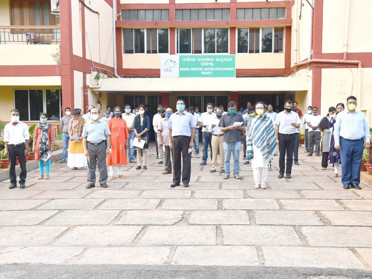 Responding to the clarion call given by the Honourable Chief Minister Shri Naveen Pattnaik, officers and staff members of Project Management Unit of OFSDS sung Bande Utkal Janani, the state song to express their gratitude to frontline COVID-19 warriors on 30th May 2020. The recital programme was led by PCCF & Project Director and joined by Additional Project Director, Deputy Project Director, State Programme Managers and all other staff members of AJY and OFSDP-II.